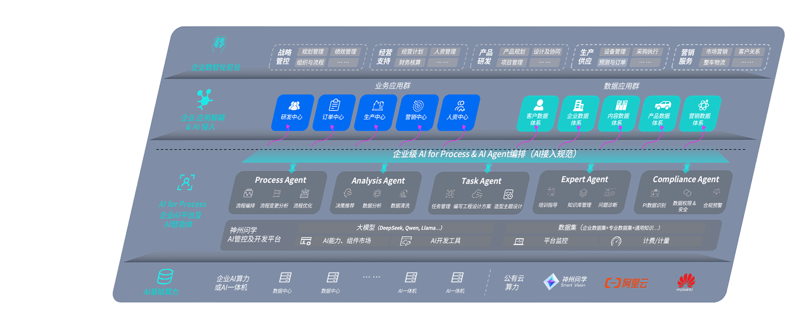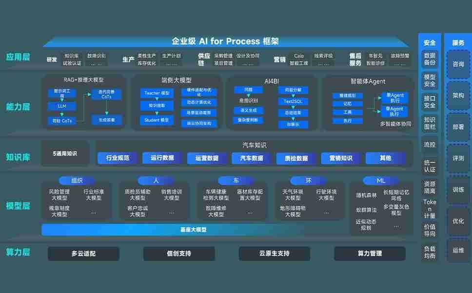 橘子平台问学智车解决方案是一套基于AI技术的汽车行业智能化系统,,,,覆盖从底层算力到顶层AI应用的全栈方案。。方案由算力层、、、、模型层和应用层组成:算力层,,,方案支持多种一体机配置,,,具备云端灵活部署、、多云适配以及动态优化计算资源的能力;模型层,,,橘子平台问学平台版提供了企业级AI应用一站式构建与管理平台,,,,支持基于后训练强化技术的汽车企业专属模型的训练、、、、评测和运营;应用层,,橘子平台问学DeepSeek版提供包括超级员工、、、智能招采、、智能营销、、、、智能客服、、、AI for BI等一系列解决方案,,可助力汽车行业实现数字化转型,,,让管理更智能、、、、响应更敏捷。。。